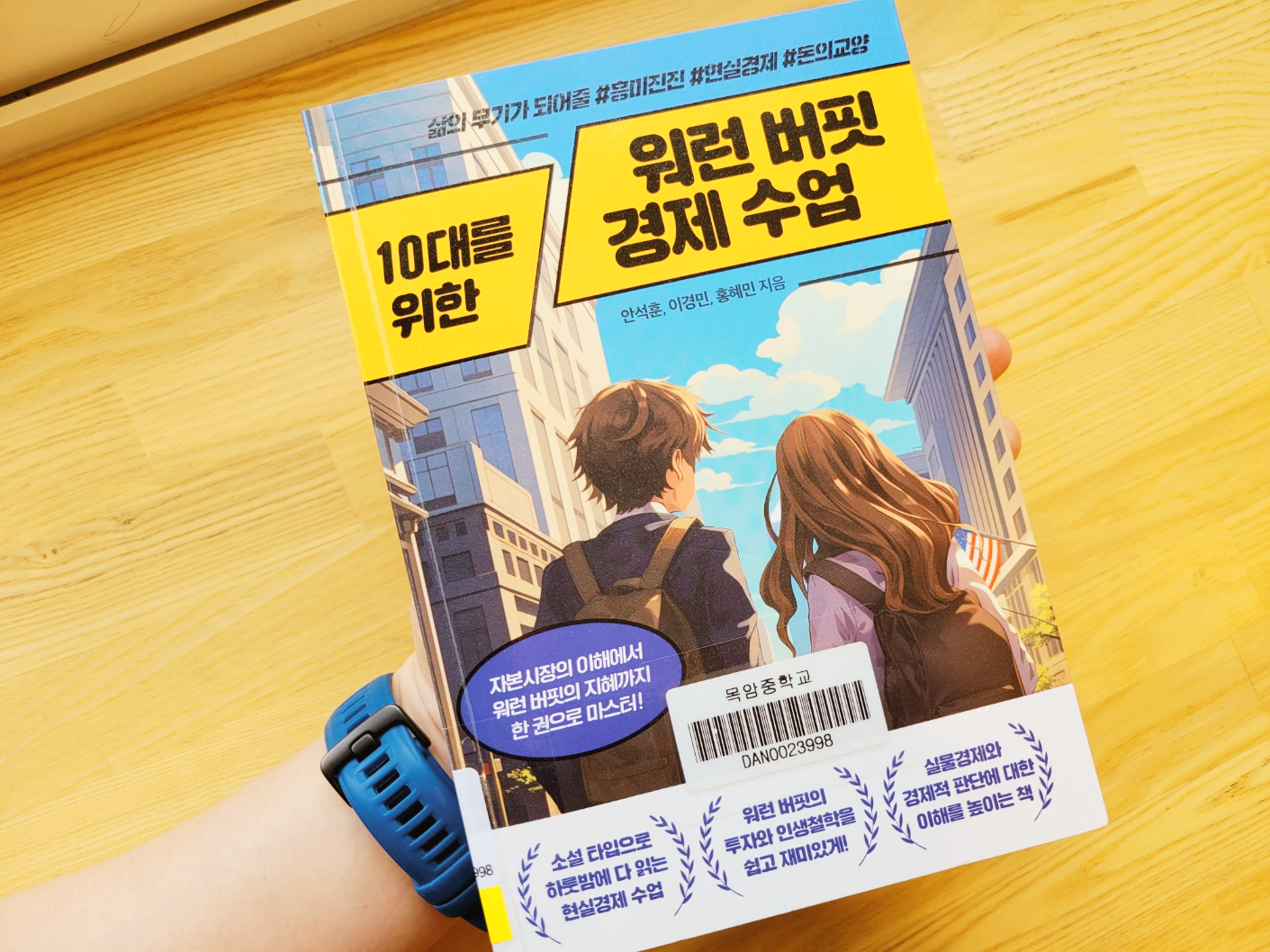 주식이나 경제는 중학생이나 고등학생들이 미리 해보는 것은 어떨까요? 금융교육이 필요합니다. 이 책은 경제에 관심이 많은 중·고등학생들을 위한 맞춤형 경제 입문서입니다. 표지를 보면 도시를 배경으로 교복 차림의 소년과 소녀가 함께 걷고 있는 모습이 담겨 있는데, 이는 우리가 실제로 살아가는 사회 속에서 경제를 배우고 실천해야 한다는 메시지를 상징적으로 전하고 있어 보입니다. 푸른 하늘과 밝은 햇살 아래 미국 국기를 배경으로 한 장면은 ‘워런 버핏’이라는 인물의 투자 철학이 미국식 자본주의와 현실 경제 속에서 어떻게 적용될지를 암시하죠. 워런 버핏의 철학과 원칙, 그리고 실생활 경제 감각까지 폭넓게 담고 있어 경제를 처음 배우거나 주식에 관심이 많은 청소년들이 흥미를 잃지 않고 읽어갈 수 있도록 구성되어 있습니다. 일러스트 이미지만 봐서는 소설 같은데 내용도 소설처럼 경제를 설명하고 있습니다.